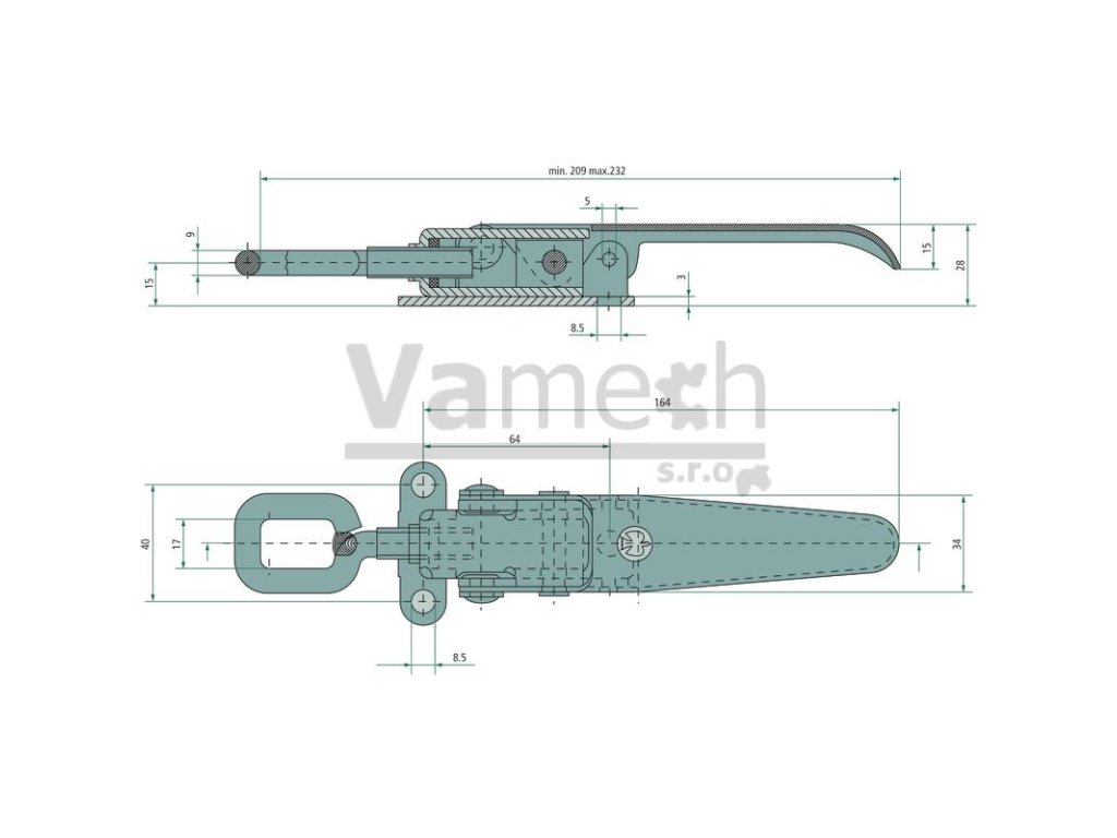 Možnosť nastavenia (mm): 210 - 235 Istenie: - Montážna výška: 28 mm Referenčný typ: 60450 Prevedenie: zinkované, na naskrutkovanie