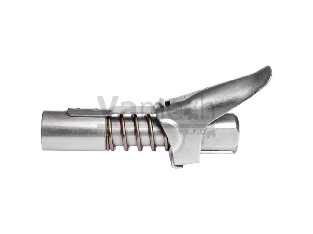 Umožňuje bezpečné a jednoduché mazanie počas údržbárskych prác bez straty mastnoty aj pri vysokom zaťažení - len niekoľko sekúnd, pustite a pracujte bez toho, aby ste držali. Závit G1/8" • Možnosť pripojenia ku všetkým bežným mazacím pištoliam: manuálne, pneumatické a elektrické (prevádzka na batérie) • Vhodné pre všetky bežné typy mazív podľa špecifikácií DIN a SAE • Štyri kalené čeľuste, extrémne nízke opotrebenie • S vysoko výkonným tesnením pre dlhú životnosť • Spätný ventil kvôli tesnosti • Ľahké uvoľnenie pomocou páky, žiadne zaseknuté spojky, dokonca aj pod vysokým tlakom • Počas mazania nie je potrebné držať.Dodatočné parametre