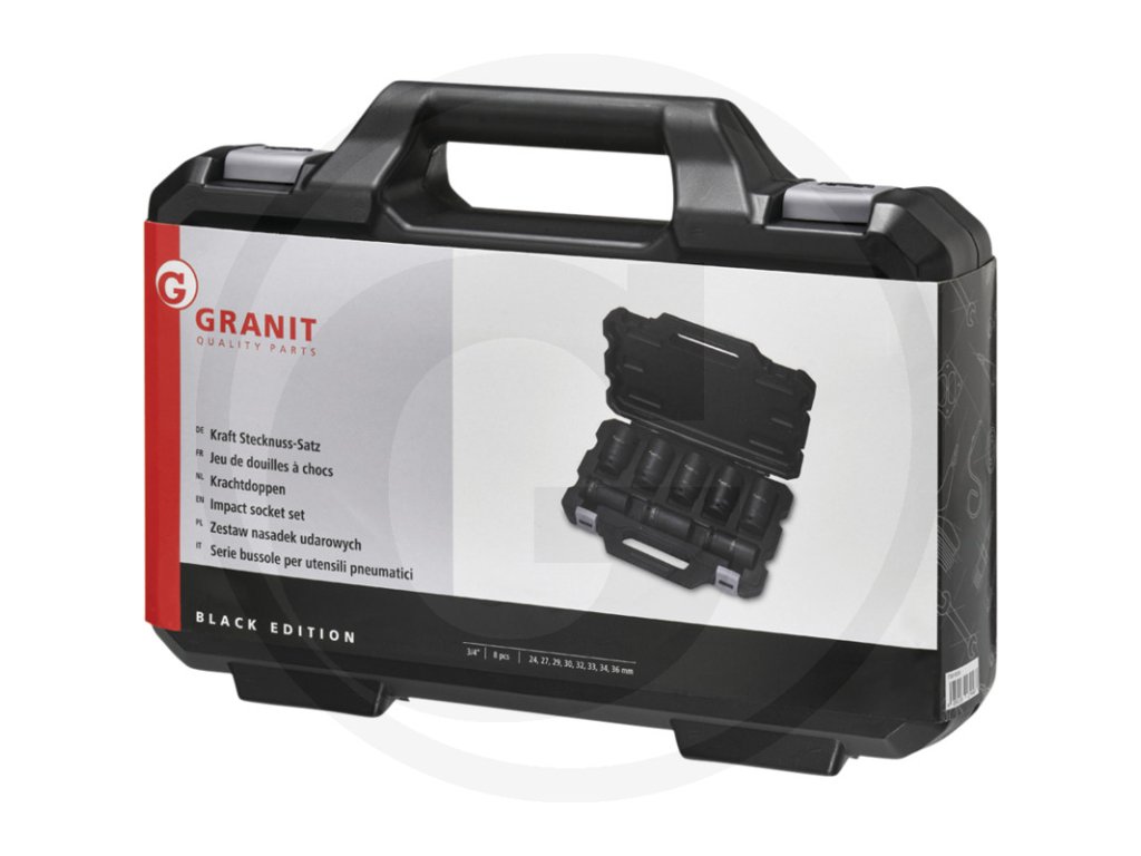 GRANIT BLACK EDITION Sada silových šesťhranných nástrčných orechov 3/4“, 8-ks, 7301009