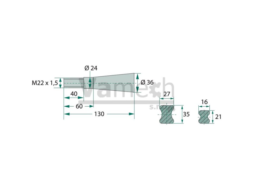 Tvar: rovný Závit: M22 x 1,5 Dĺžka (mm): 900 Profil: Double-T Veľkosť kľúča (mm): 34 Opis:s kužeľovou maticouDodatočné parametre