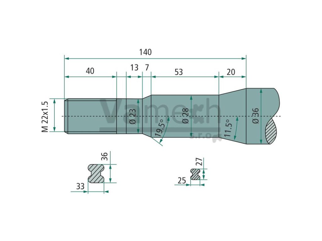 Tvar: zakrivený, 50 mm Závit: M22 x 1,5 Dĺžka (mm): 880 Profil: Double-T Kužeľ: K110 Anzugswert (Nm): 500 NMDodatočné parametre