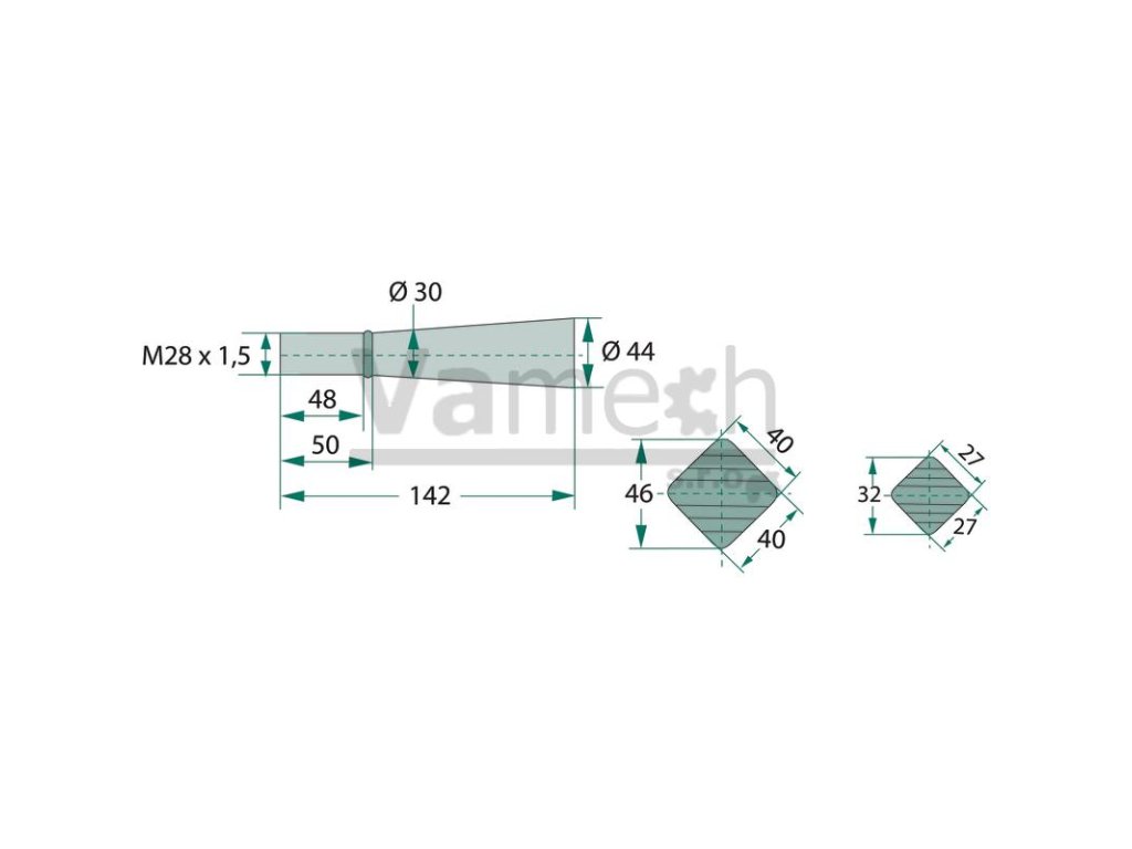 Tvar: rovný Závit: M28 x 1,5 Dĺžka (mm): 1250 Vhodné pre: Weidemann, Stoll - JF, Baas/Trima, Alö/Quicke Profil: štvorcový Veľkosť kľúča (mm): 41 Opis:s kužeľovou maticouDodatočné parametre