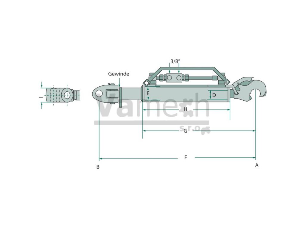 Kat.: 3 / 32 B kat.: 3 / 32 Závit: M36 x 3 Zdvih (mm): 210 Piestnica (Ø) A (mm): 50 Ťažná sila (t): 9 Valec-Ø vnútorný E (mm): 90 Zdvíhacia sila t: 12 I (mm): 51 F (mm): 666/906 Typ: Háčik/vidlicová spojka Nastaviteľný: Ja Typ tretieho bodu: hydraulischDodatočné parametre