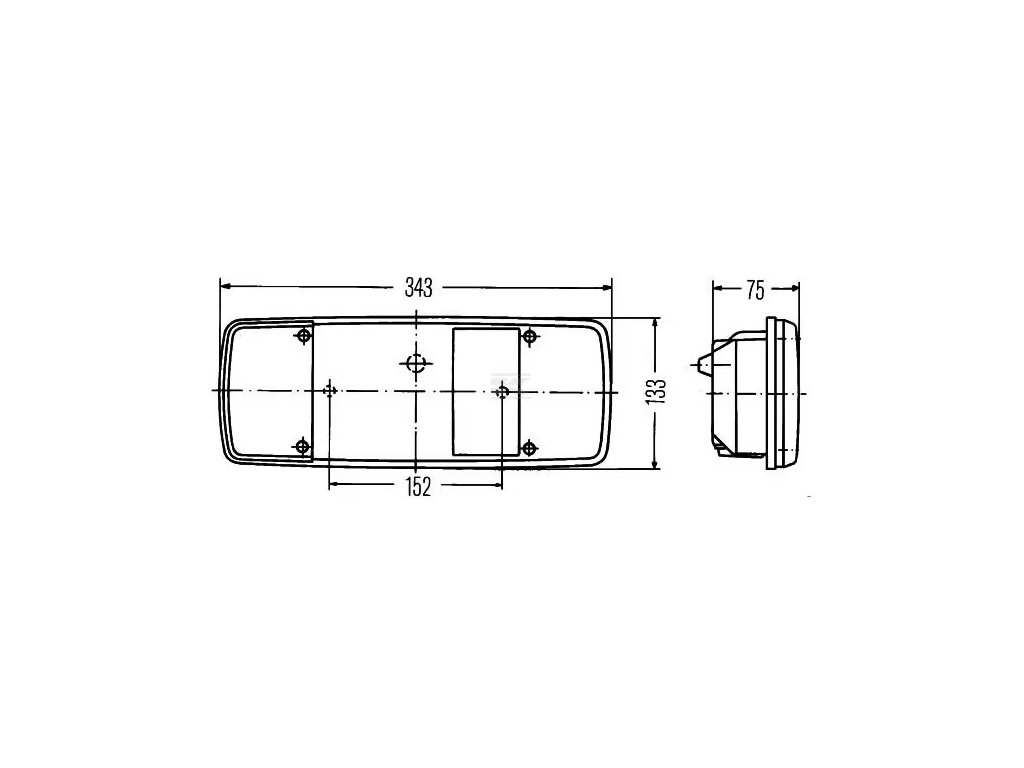 Koncové svetlo, ľavé 343x133 mm Hella, 2SK003567331