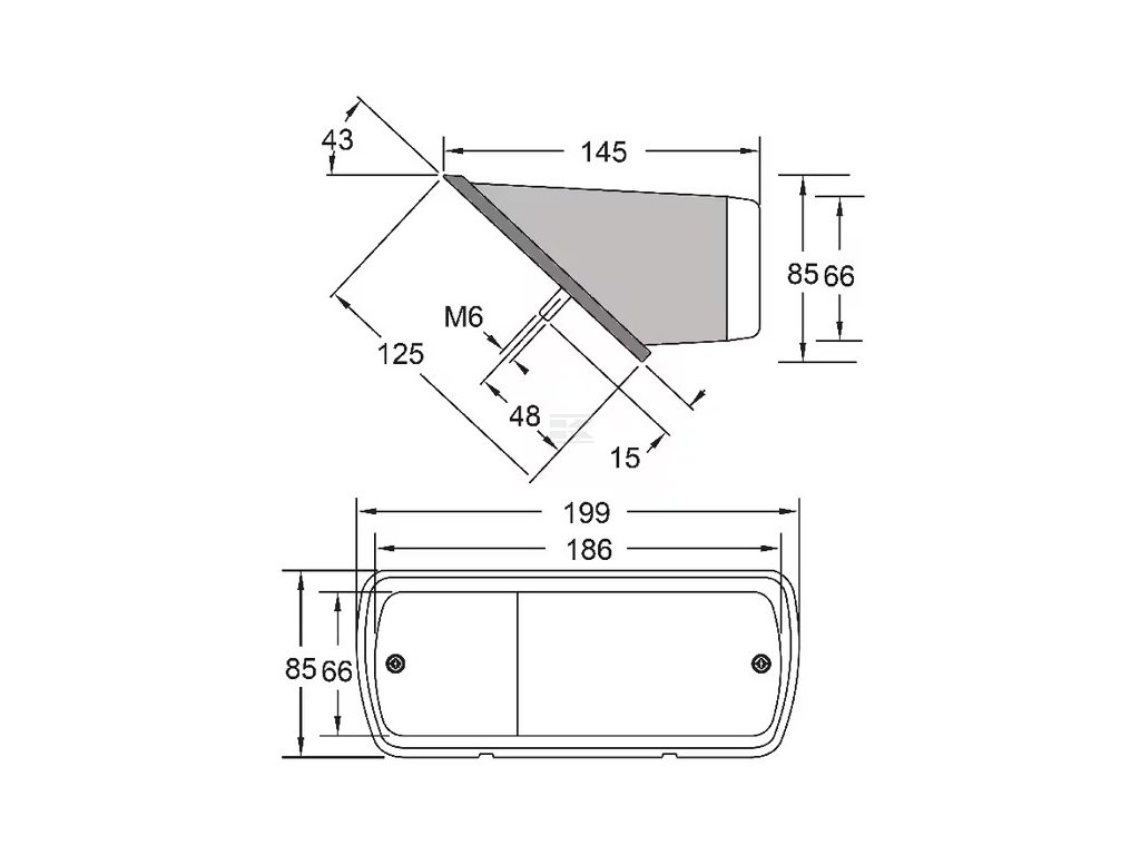 Koncové svetlo, pravé, obdĺžnikové, 12/24 V, červené/oranžové, na skrutku, 200 x 85 x 85 mm Britax, 83960375N