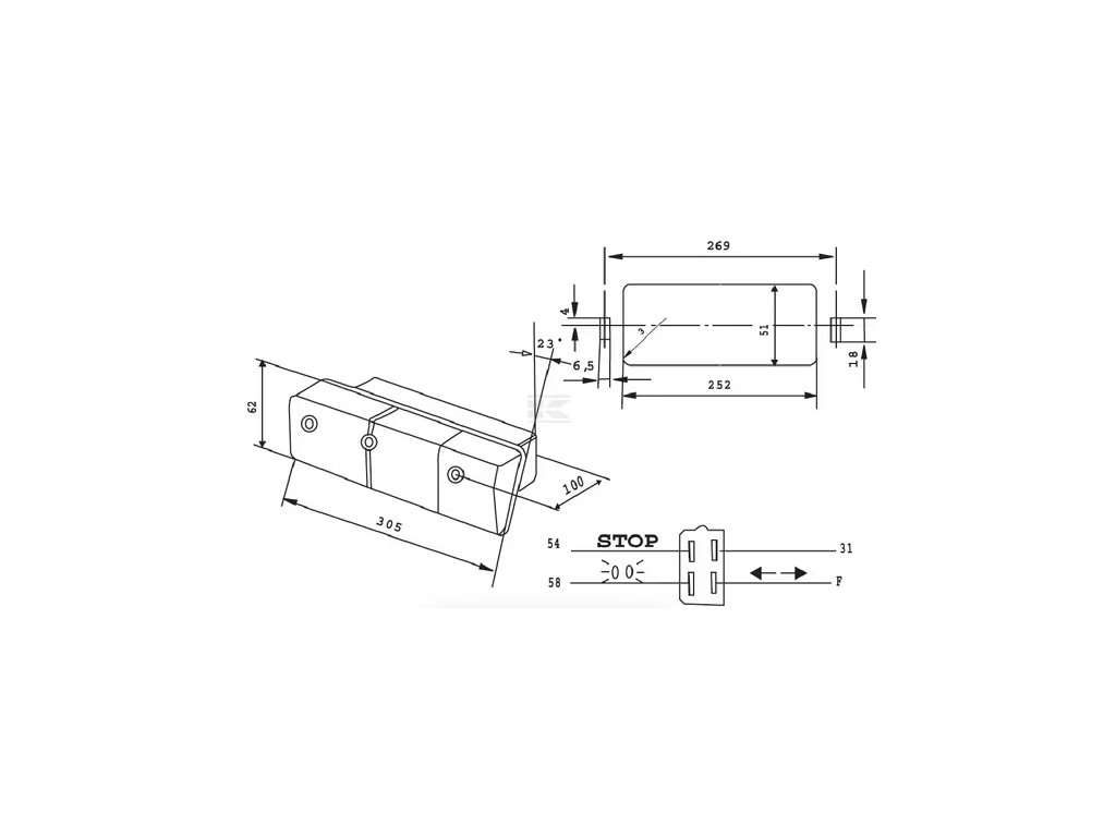 Koncové svetlo ľavé, 305x62 mm, COBO, 02351000