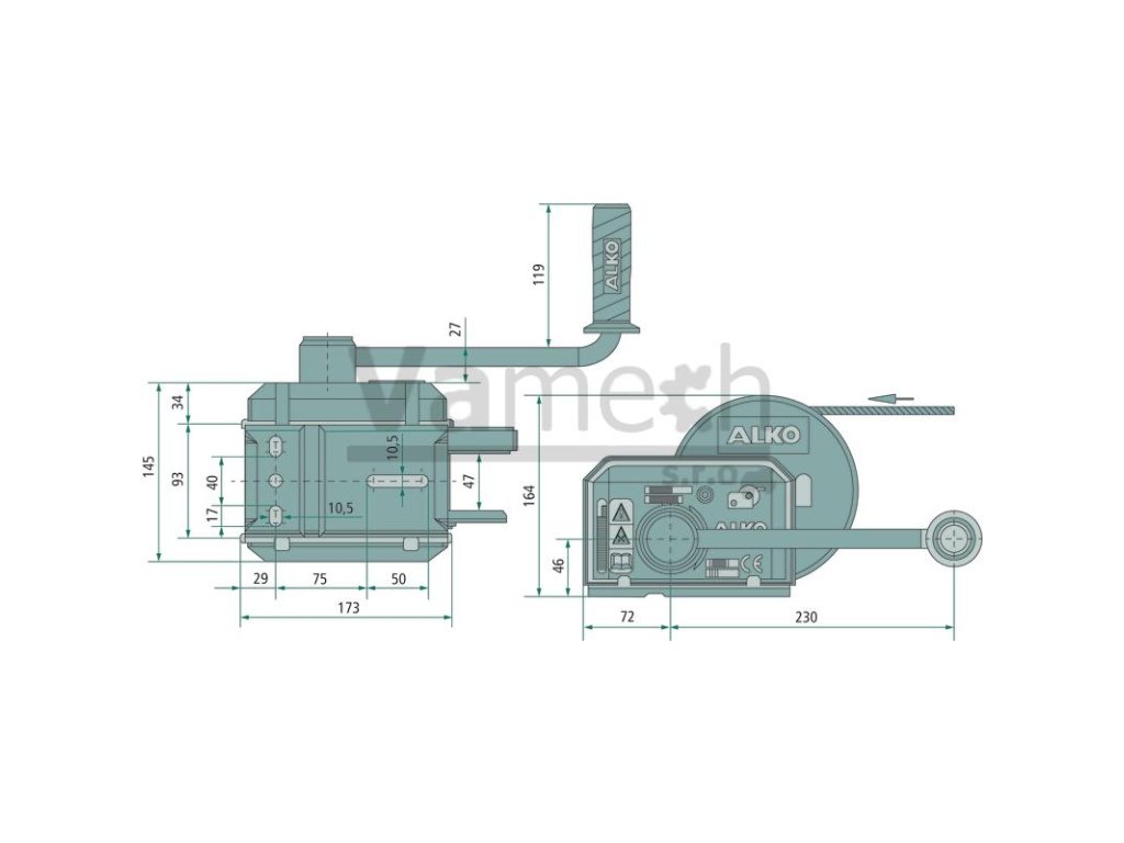 Váha (kg): 4 Dĺžka lanka do (m): 20 Značka: AL-KO Typ: 501 Plus Zaťaženie max. (kg): 500 Ručná sila (N): 200 Najnižšie zaťaženie (kg): 25 Prevod: 3,75 : 1 Kapacita bubna: 20 m pri lanku o priemere Ø 5 mm 7 m pri páse šírky 40 mm Hmotnosť: 4,80 kg EAN kód: 4003718048148 Bezpečnosť: Kupujúci navijaku musí preveriť, či konkrétny produkt napĺňa všetky jeho individuálne požiadavky! 1. tlakové zaťaženie brzdy: navijaky s tlakovým zaťažením brzdy vyžadujú pre správne fungovanie aspoň uvedené minimálne zaťaženie (podľa typu) a pokiaľ toto minimálne zaťaženie nie je splnené, neuplatnia sa brzdiace funkcie 2. brzdené navijáky spĺňajú EG-normu EN 13157 platnú od 01.09.2004. AL-KO navijaky nemôžu byť využívané v nasledujúcich oblastiach: stavebné výťahy, plošiny, štúdiové a ostatné vysokozdvižné zariadenia. strojný pohon je zakázaný! nie je určené pre nepretržitú prevádzku! nemožno používať ako kotviace zariadenie! je zakázané vyskytovať sa pod zdvíhaným telesom a na navijaku musí vždy zostať aspoň tri plné otáčky s automatickou spätnou brzdouDodatočné parametre