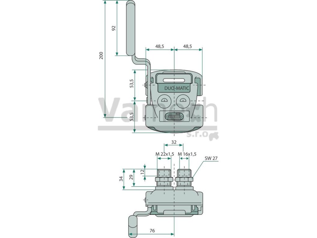 Připojovací závit: 2 x AG M22 x 1,5 / IT M16 x 1,5 Vozidlo/použití: motorový vůz Provedení: s ventilem Doplňující informace: M16 x 1,5 mit ABEDodatočné parametre