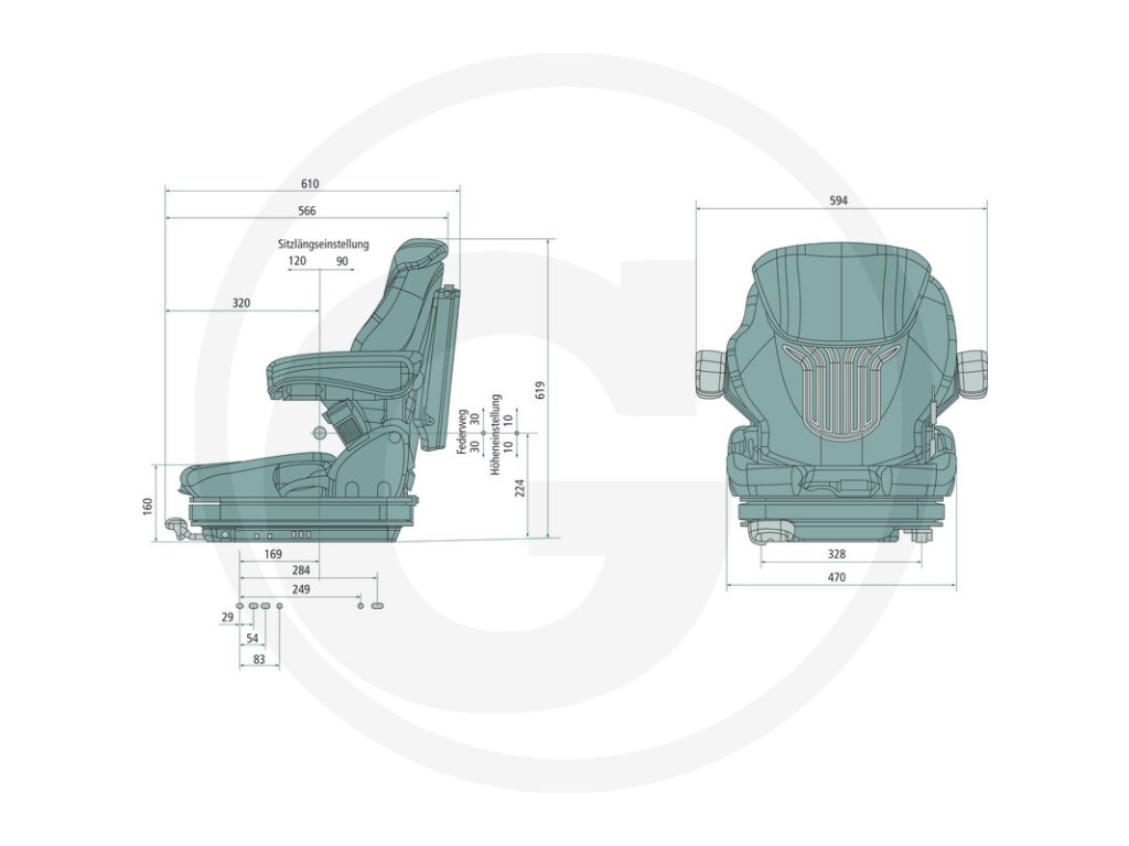 Popis: Výška (mm): 619 Dĺžka (mm): 610 Technické dáta: • Vzduchom odpružené komfortné sedadlo s 12V kompresorom • Pružina pojazdu 80 mm • Podĺžne nastavenie 210 mm • Nastavenie hmotnosti od 45 do 170 kg, elektropneumatické • Mechanika bedrovej opierky • Nastavenie sklonu opierky • Zádržný systém, automatický, Duo Sensitiv • Spínač sedačky • Šírka sedadla sedadla 470 mm • Spĺňa FEM 4.002 v spojení so zádržným systémom pre vysokozdvižné vozíky • Spĺňa normu ISO 6683 pre stroje na zemné práce Odpruženie: vzduchové odpruženie Rozmer stopy (mm): 328 Meradlo: 330 Typ čalúnenie: látka Spínač kontaktu sedadla: áno Šírka sedadla (mm): 470 Joystick konzola: voliteľné Pásový systém: Klinový pás Palubné napätie (V): 12 Typ sedadla: MSG75G/521 Loketná opierka: voliteľná Bedrová opierka: mechanická Predĺženie zad: voliteľnéDodatočné parametre