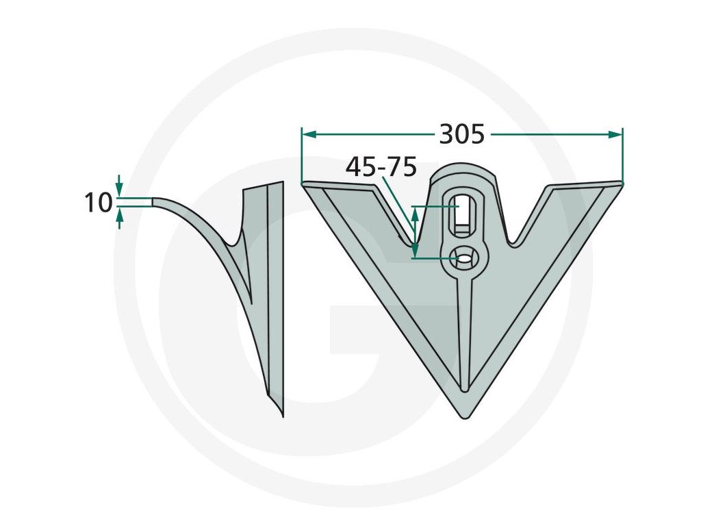 Šípová radlica GRANIT, 305 x 10 x 5, polomer=300, 78801569, 180101.310-45-75
