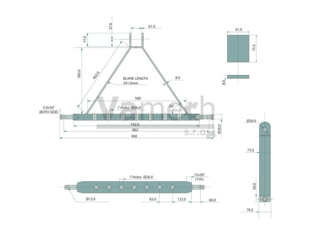 Kategorie: 2 A (mm): 900 Šířka (mm): 80 Výška (mm): 40 D (mm): 60 E (mm): 122 F (mm): 83 G (mm): 28,5 H (mm): 26 Počet děr: 7 Provedení: Kat. 2Dodatočné parametre