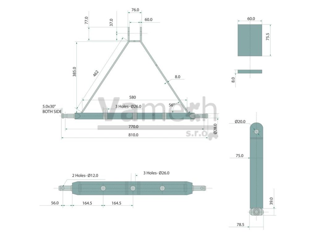 Kategorie: 2 A (mm): 810 Šířka (mm): 80 Výška (mm): 40 D (mm): 56 E (mm): 164,5 F (mm): 164,5 G (mm): 28,5 H (mm): 26 Počet děr: 3 Provedení: Kat. 2Dodatočné parametre