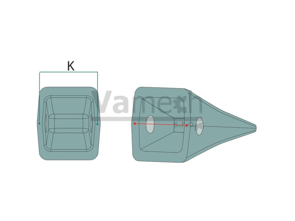 Systém: Caterpillar Veľkosť: J300 A (mm): 213 B (mm):73 C (mm): 99 D (mm): 87 K (mm): 76 Prevedenie: L-tooth